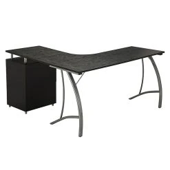 Add a workspace anywhere with the commercial grade Ameriwood Home Pursuit Credenza. Whether you need a desk in your home office or an extra workstation in your conference room, the credenza’s minimalist design will fit effortlessly. It has a wide desktop, creating a larger work surface, slim shaped side panels for easy leg movement and a wire management trough and slots to keep cords organized. The subtle curves and beautiful cherry and gray finish also give the credenza a refined elegance that’ll enhance the style of any room. When assembled, the credenza has dimensions of 29.5”h x 66”w x 19.5”d. It’s made of water-resistant PVC with a laminated hollow core for a durable build to last for years.