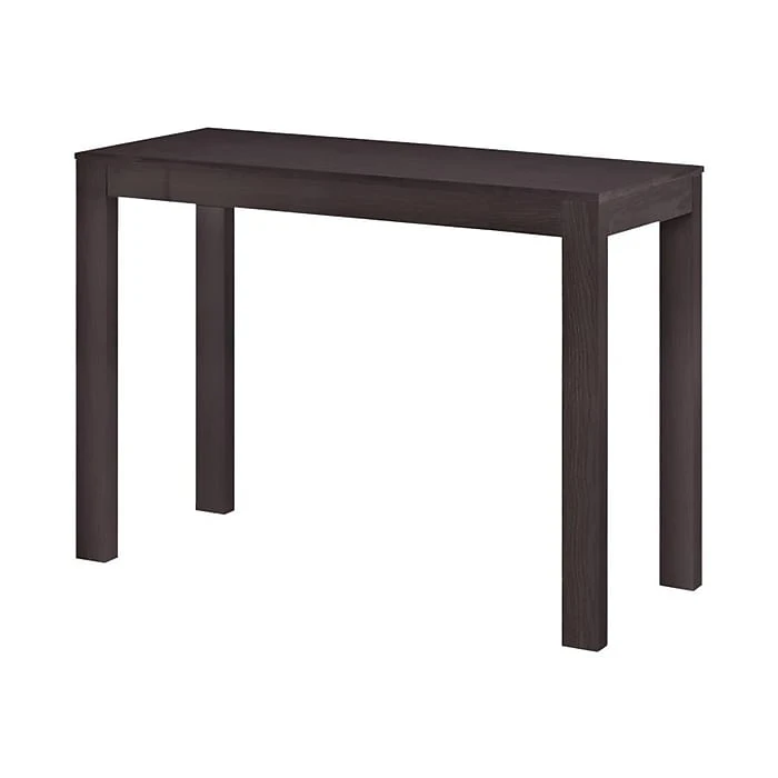 Redefine your workspace or any room in your home with the sleek, minimalist lines of this attractive Ameriwood Home Parsons Desk with Drawer. The Desk features a small center storage drawer that’s perfect for pens, paper, computer peripherals and other small office supplies. Don’t let your workspace suffer when you have nice, affordable options with this laminated particleboard and MDF desk. Parsons Desk top comes preassembled, just attach the 4 legs to finish the assembly.