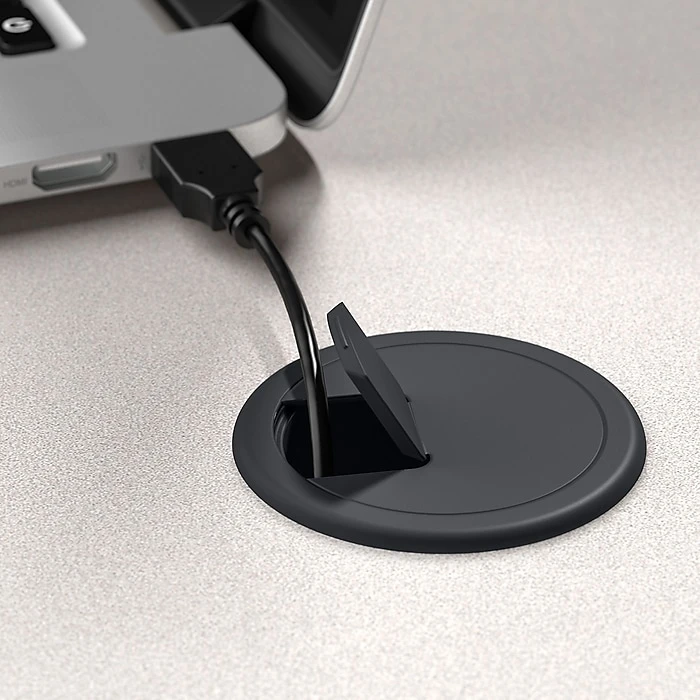 - Desktop includes wire management grommets to neatly organize cords and cables
