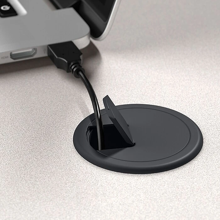 - Desktop includes wire management grommets to neatly organize cords and cables