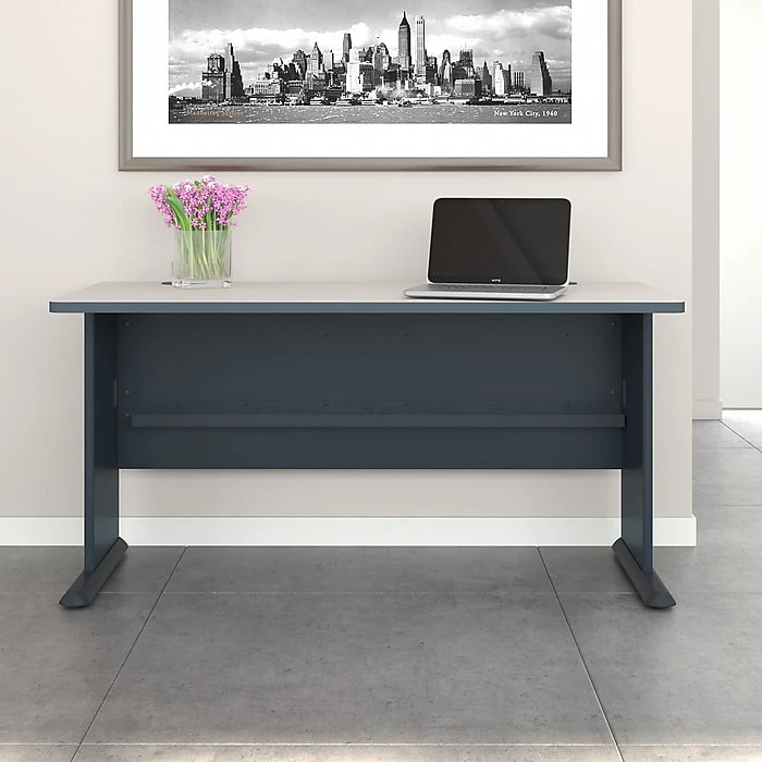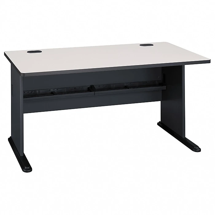 Convenient and comfortable with just the right amount of workspace, the Bush Business Furniture Cubix 60W Desk has the commercial quality you need for years of productivity. The durable thermally fused laminate surface fends off scratches and stains. Rugged edge banding and thick end panels resist damage as sturdy feet with adjustable levelers ensure stability. The comfortable C-leg design offers loads of legroom, and a comprehensive wire management system organizes cables to keep them out of your way. Cubix offers a variety of layout options and 7 attractive two-tone finishes. Backed by a 10 Year Warranty. American made with U.S. and imported parts.