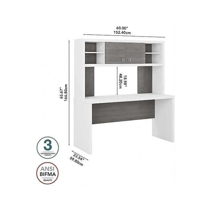 - Bundle includes: 60″W credenza desk, 60″W hutch
