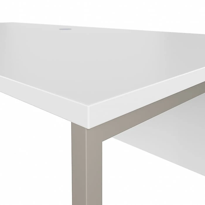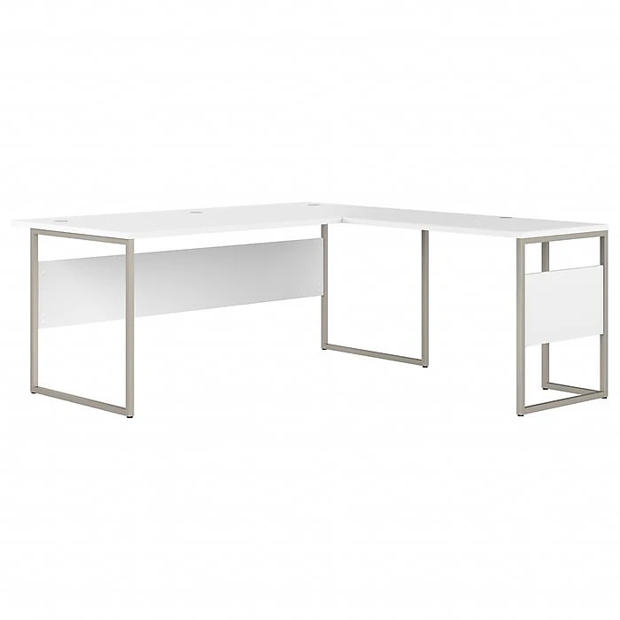 The Bush Business Furniture Hybrid L-shaped table desk blends a durable work surface with sturdy metal legs to offer a stylish, long-lasting solution for the modern professional. Tackle your next project or assignment with a computer, books, and more on a desktop that supports up to 200 lbs. Four built-in wire management grommets keep cords and cables in order, so your work area remains free from unnecessary clutter. The corner desk’s open leg design and finished privacy panel allows it to look great facing any direction in a home or professional office environment. This modern computer desk has been meticulously tested to meet or exceed the ANSI/BIFMA standards for safety, durability, and performance and is backed by a 10-year manufacturer warranty. American-made with US and imported parts.