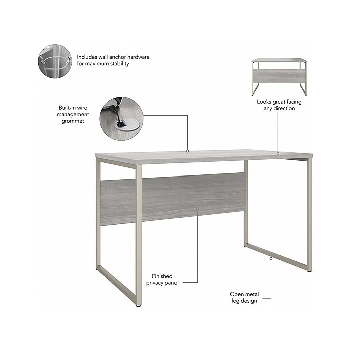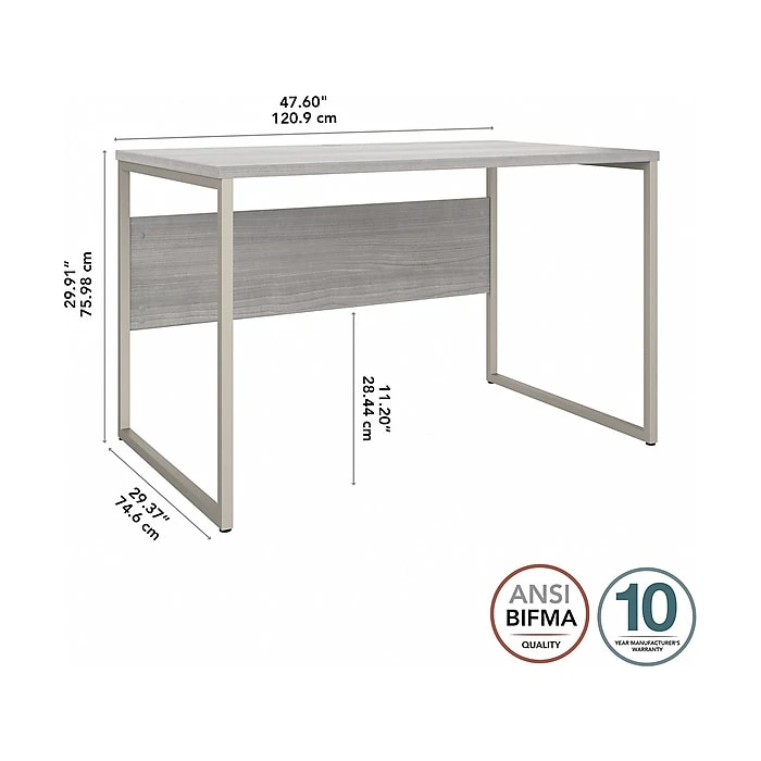 The Bush Business Furniture Hybrid 48″W x 30″D computer table desk blends a durable wood work surface with sturdy metal legs to offer a stylish, long-lasting solution for the modern professional. Tackle your next project or assignment with a computer and books.