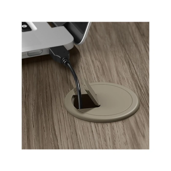 - Desktop includes three built-in wire management grommets to keep cords and cables out of the way