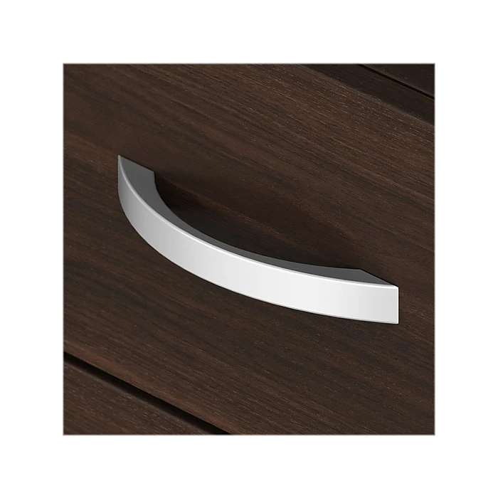 Choose this Bush Business Furniture Studio C L-shaped desk for a comfortable design that works with you for years and a fresh finish that looks great anywhere. The thermally fused laminate finish, durable edge banding, and sturdy end panels resist scratches, stains, and dents while standing up to the rigors of a 40-plus hour workweek. Keep pesky computer cords out of your way with the cable management system for an organized work surface. The 42″W return attaches to either side of the 60″W desk to form a left- or right-handed L-shaped layout, while the three-drawer mobile file cabinet rolls throughout your office or remains in place as needed. One file drawer accepts legal-, letter-, and A4-size paperwork, while two box drawers organize office supplies. This desk with storage set comes with a 10-year manufacturer limited warranty and meets ANSI/BIFMA quality test standards. American-made with US and imported parts.