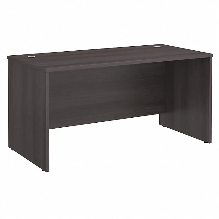Choose the Bush Business Furniture Studio C 60W Office Desk for a durable design that works hard for years with a fresh finish that looks great anywhere. With a thick surface, an extended modesty panel and clean lines, the Office Desk conveys a classic look but adds a contemporary White or Storm Gray finish to meet the style needs of the modern workspace. The thermally fused laminate finish, durable edge banding and sturdy end panels resist scratches, stains or dents while standing up to the rigors of a 40-plus hour work week. Keep pesky computer cords out of your way with the cable management system for an organized work surface. Combine the Desk with matching products and accessories from the Studio C collection to create a unique office for the way you work. This contemporary office furniture comes with a 10 Year Warranty and meets ANSI/BIFMA quality test standards. See the full collection for coordinating items available to make your office your own with Studio C. American made with U.S. and imported parts.