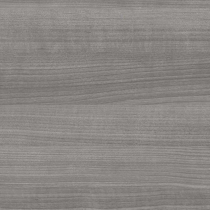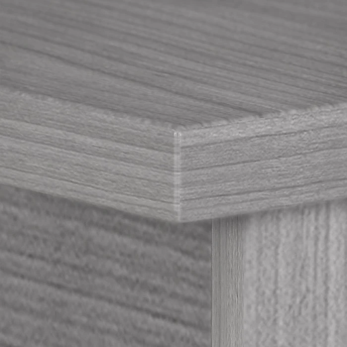 - Thermally fused laminate over composite wood in a platinum gray finish