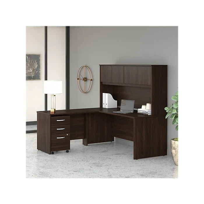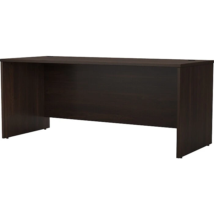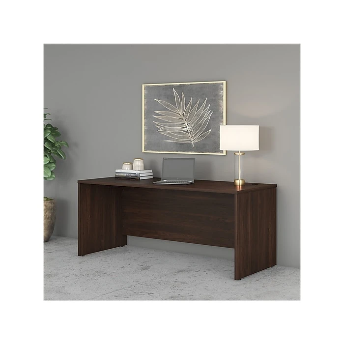 Choose the Bush Business Furniture Studio C 72″W office desk for a durable design that works hard for years with a fresh finish that looks great anywhere. A thick surface, an extended modesty panel, and clean lines convey a classic look that’s available in several contemporary or traditional finishes to fit any workspace. The thermally fused laminate finish, durable edge banding, and sturdy end panels resist scratches, stains, and dents while standing up to the rigors of a 40-plus hour work week. Keep pesky computer cords out of your way with an integrated cable management system for an organized work surface. This computer desk is backed by a 10-year manufacturer’s warranty and meets ANSI/BIFMA quality test standards for safety and performance. See the full collection for coordinating items available to make your office your own with Studio C. American made with U.S. and imported parts.