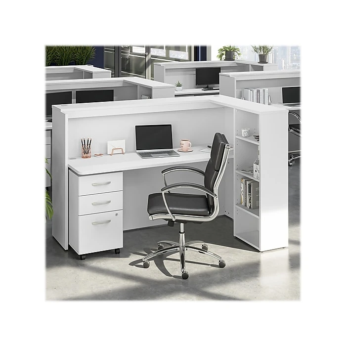 - Cubicle desk with shelves and mobile file cabinet is a great way to eliminate distractions and enhance productivity in any professional office