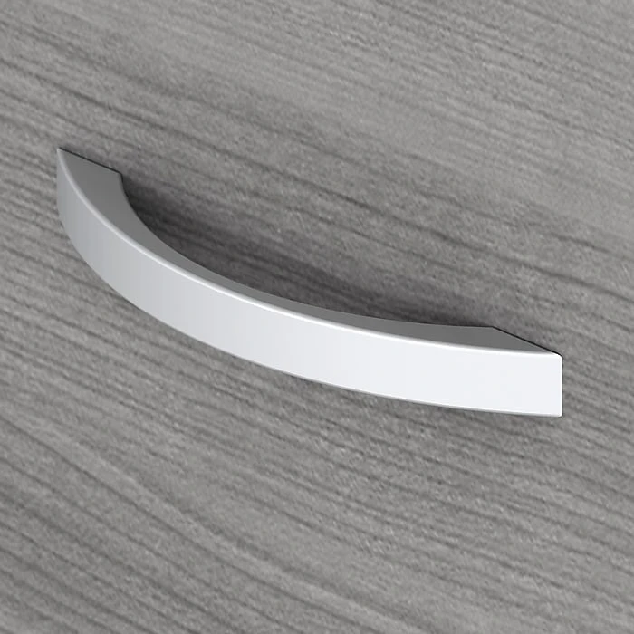 - Thermally fused laminate over composite wood in a platinum gray finish