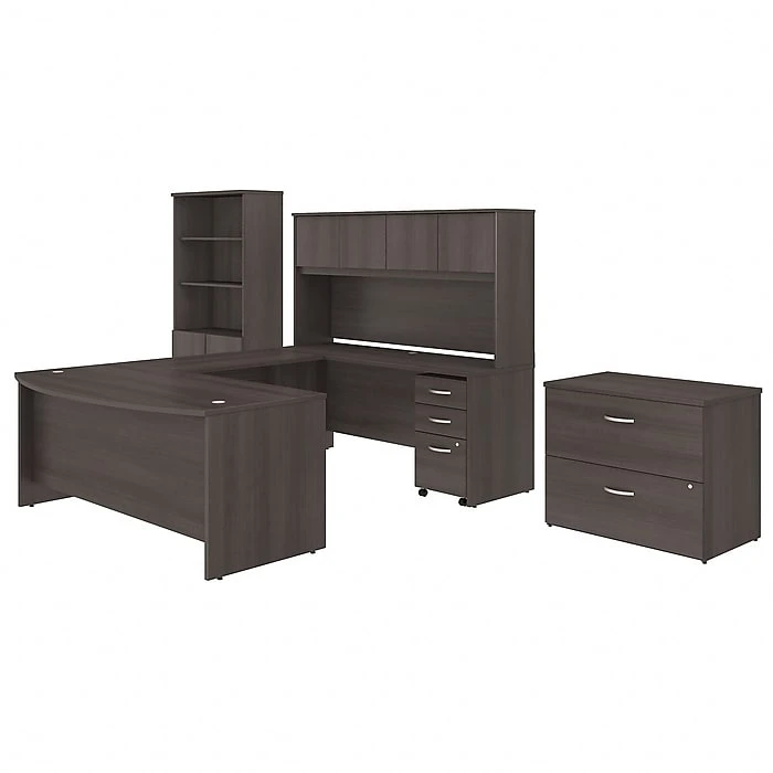 • The Bush Business Furniture Studio C 72W X 36D U Shaped Desk Set offers a spacious and ergonomic workspace, ideal for multitasking and organization.