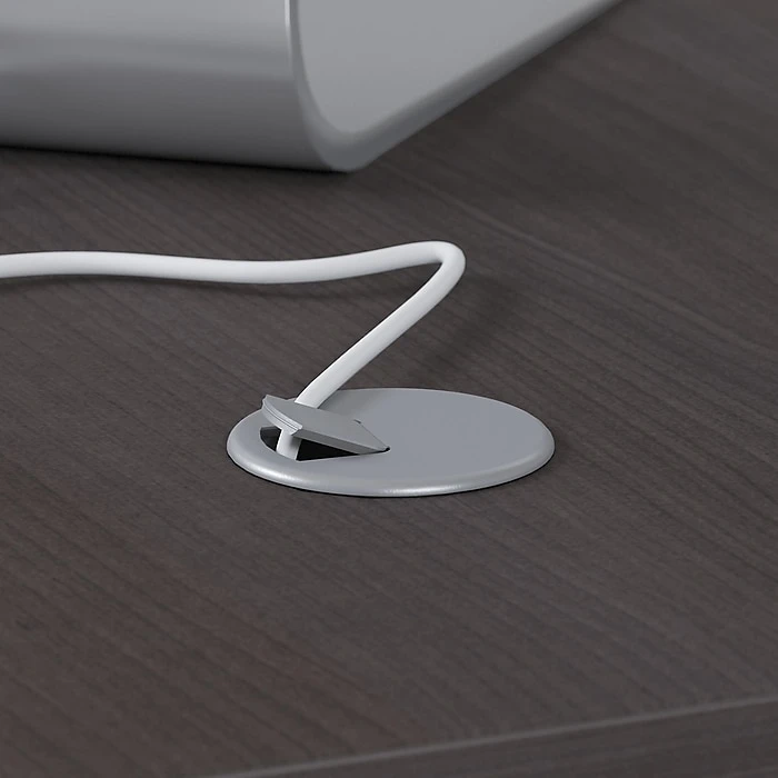 • Crafted with durable laminate construction in a sleek Storm Gray finish, this desk set combines functionality with modern aesthetics.