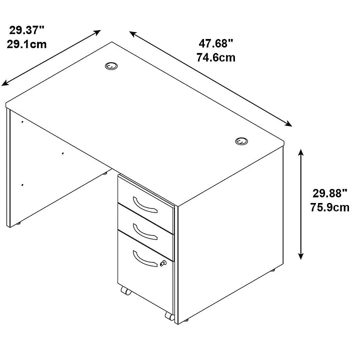 • This desk includes a pre-assembled 3Dwr mobile pedestal, offering convenient storage solutions and mobility for easy reorganization of your office space.