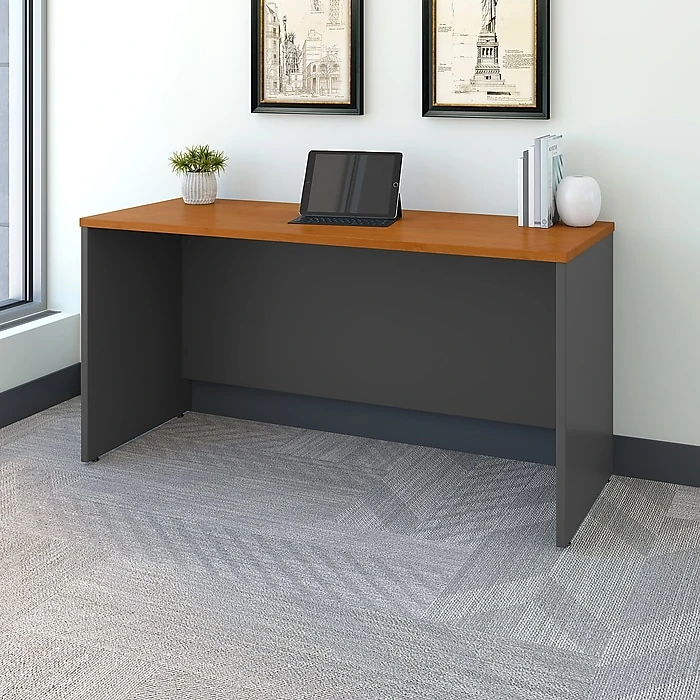 • The Bush Business Furniture Westfield 60W X 24D Credenza Desk combines elegance and functionality with its natural cherry laminate finish, making it ideal for any office or home workspace.