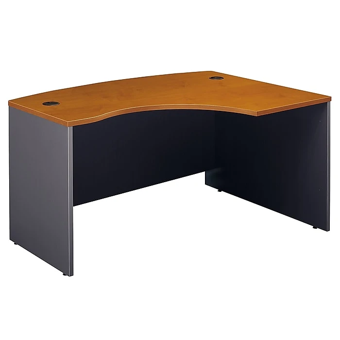 Bush Business Furniture Westfield Collection 60W x 43D Right Hand L-Bow Desk Shell in Natural Cherry for a classic styling with clean lines and extended modesty panels. Constructed with 100% thermally fused laminate for durability and superior resistance to scratches and stains. Create an expansive corner workstation with any Westfield Credenza or Return Bridge on the right hand side of the Desk. You’ll enjoy the integrated wire management located within both desktop and leg grommets to conceal cables to keep your desk area uncluttered. Compensate for uneven floor surfaces with adjustable levelers. Meets ANSI/BIFMA test standards in place at time of manufacture. The Westfield Collection is backed by the Bush Business Furniture 10-Year Warranty. American made with U.S. and imported parts.