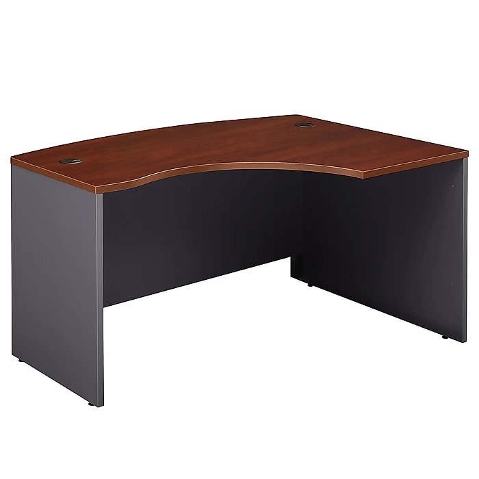Bush Business Furniture Westfield Collection 60W x 43D Right Hand L-Bow Desk Shell in Hansen Cherry for a classic styling with clean lines and extended modesty panels. Constructed with 100% thermally fused laminate for durability and superior resistance to scratches and stains. Create an expansive corner workstation with any Westfield Credenza or Return Bridge on the right hand side of the Desk. You’ll enjoy the integrated wire management located within both desktop and leg grommets to conceal cables to keep your desk area uncluttered. Compensate for uneven floor surfaces with adjustable levelers. Meets ANSI/BIFMA test standards in place at time of manufacture. The Westfield Collection is backed by the Bush Business Furniture 10-Year Warranty. American made with U.S. and imported parts.