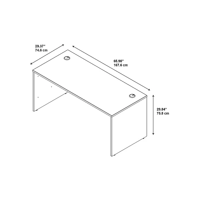 With the Bush Business Furniture Westfield 66W Office Desk, you’ll enjoy classic looks, ample workspace and convenient wire management. Set up your laptop, phone and more on the roomy surface while feeding cables through wire management grommets in the desktop and modesty panel for a clutter-free work area. Rely on the rugged thermally fused laminate finish, heavy-duty construction, tough edge banding and thick end panels for continued commercial-grade quality. Add a Return (sold separately) on the left or right side to form an L Shaped Desk, or complete your office with matching storage products and convenient accessories. Westfield offers endless layout options, expansion opportunities and 7 finishes. This affordable office furniture withstands the rigors of a 40-plus hour work week and comes with a 10 Year Warranty. American made with U.S. and imported parts.