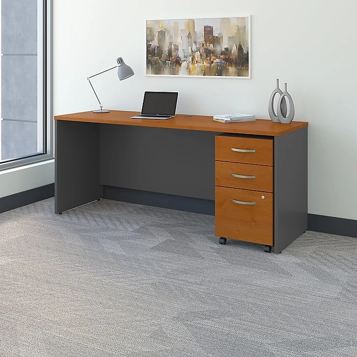 • The Bush Business Furniture Westfield Office Desk combines functionality and style, featuring a spacious 72W X 24D laminate surface that’s easy to clean and maintain.