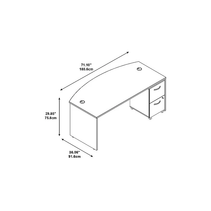 • The bow front design adds a touch of sophistication to your office, while the ample surface area provides plenty of space for your computer, paperwork, and accessories.
