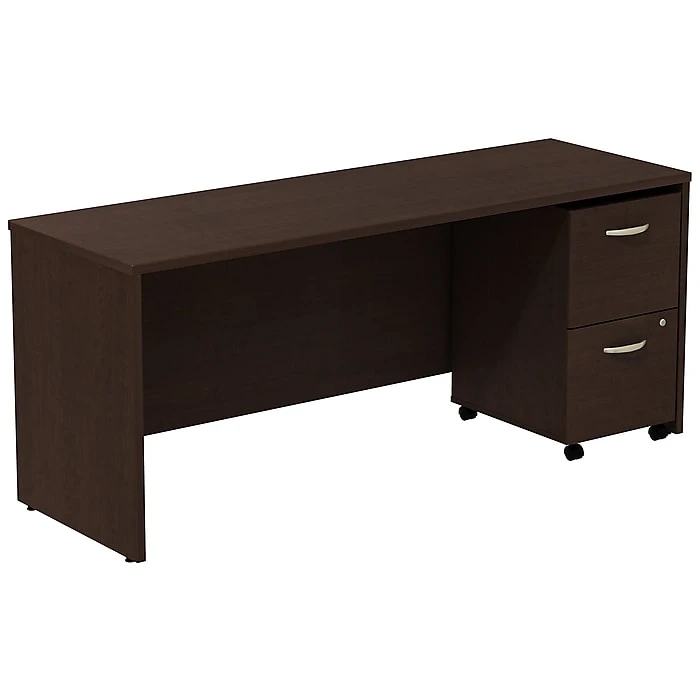 Style and simplicity combine in this Bush Business Furniture Westfield 72W Credenza Shell and 2-Drawer Mobile Pedestal. With a Thermally Fused Laminate work surface, this office duo will look good for years to come as it resists scratches and stains. The Mobile Pedestal file drawers hold letter, legal, and A4 size files, and open on full-extension ball bearing slides to provide full access to back files. This product is solidly constructed, meets ANSI/BIFMA test standards and is backed by 10 Year Warranty. American made with U.S. and imported parts.