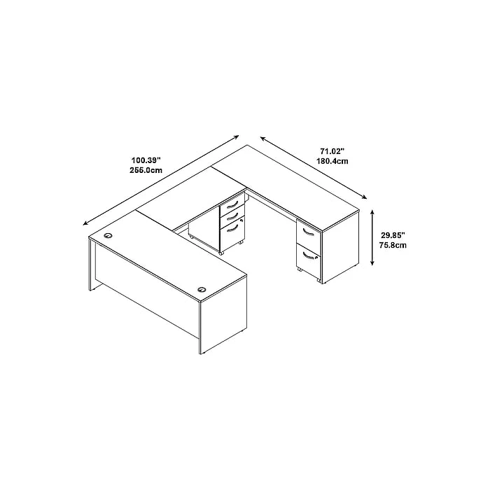 • The Bush Westfield U Shaped Desk offers a spacious and ergonomic design, perfect for office or home use. Its U-shaped configuration maximizes workspace efficiency.