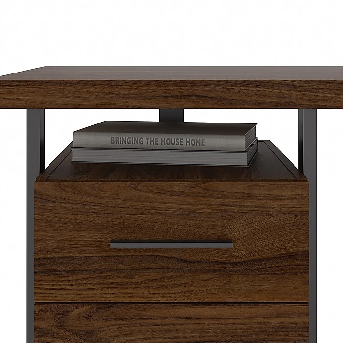 Spread out with materials and get to work on a spacious corner desk that shows off your unique sense of style. The Bush Furniture Architect 60″W L-shaped desk with drawers features a simple, durable design made with contrasting materials that reflect a modern industrial aesthetic. A 42″W return attaches to either side of the 60″W writing desk to form a right or left-handed layout with plenty of room for a computer, paperwork and more while you take on your next project or assignment. A full-extension file drawer opens on smooth ball bearing slides for an easy reach to legal and letter-size documents, and the box drawer is perfect for keeping writing utensils, notepads and other miscellaneous items within arm’s reach. This L-shaped computer desk with storage is tested to meet ANSI/SOHO quality standards for safety and performance and is backed by a 1-year manufacturer warranty.