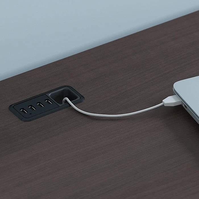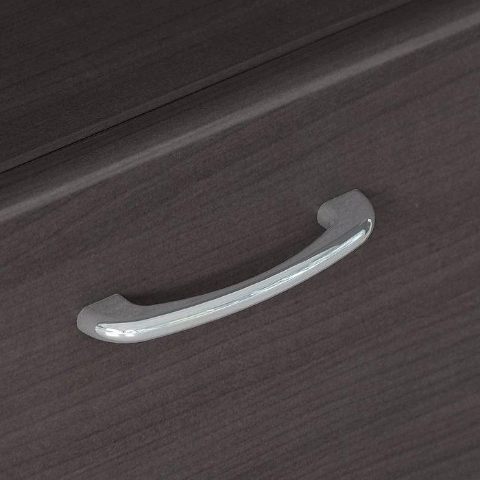 The Bush Furniture Cabot L Shaped Desk offers a spacious and efficient workplace for your home or office. Enjoy a beautiful traditional look with smart features for your convenience. The L Shaped Desk design provides a large durable work surface and just the right amount of storage to keep you feeling neat and organized. Desk storage details include an enclosed cabinet with stylish fluted glass door and a box drawer for supplies. A file drawer glides on smooth full-extension ball bearing slides and accommodates letter, legal or A4 sized files. A built-in 4-port USB hub keeps your devices connected. The unique design saves space but provides you with 60 inches to spread out in either direction. Chrome-finished hardware creates a simple, elegant and timeless appearance. See the full collection for coordinating items. Backed by a 1 Year Warranty.
