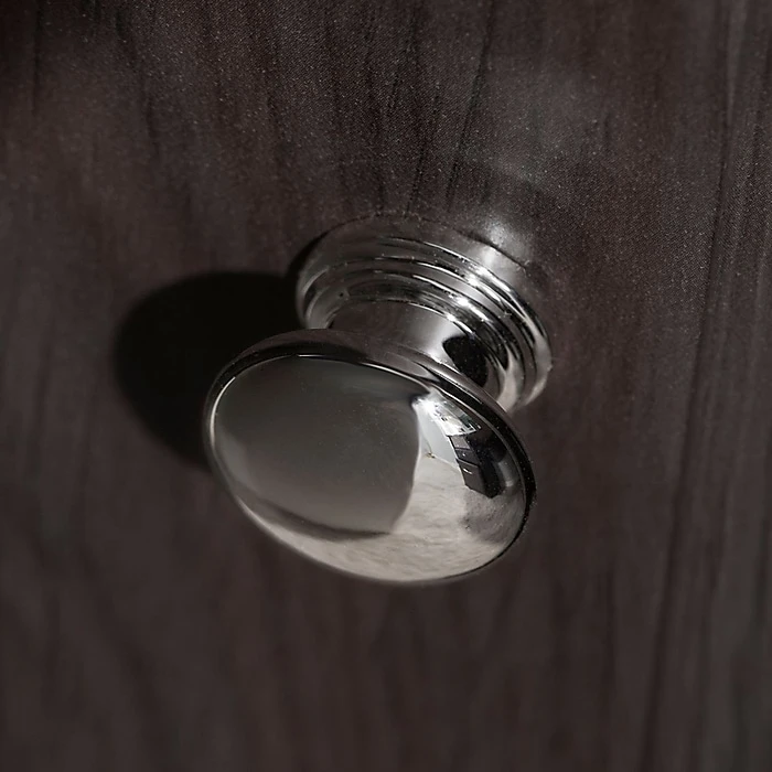 - Concealed storage cabinet in L Shaped Desk features stylish fluted glass door