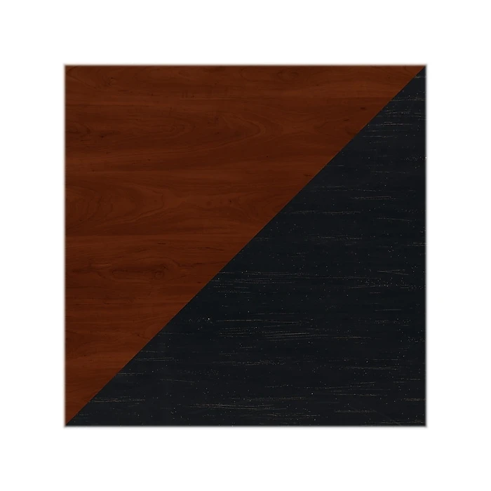 - Cottage-style bundle is made of engineered wood in antique black and Hansen cherry laminate finishes