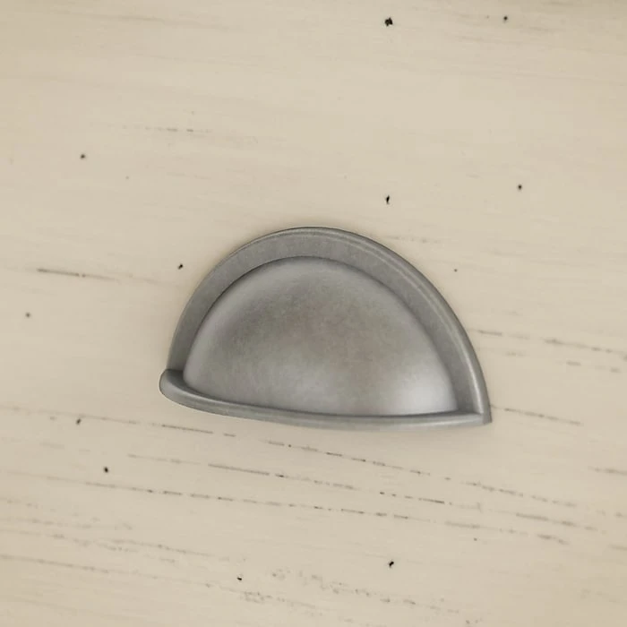 - Antique Pewter hardware pairs with distressed finish to create a modern farmhouse look