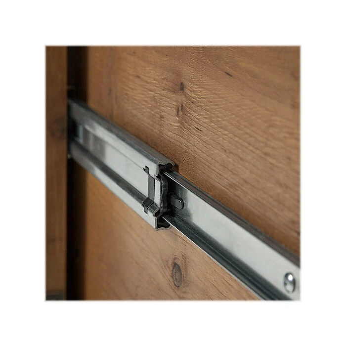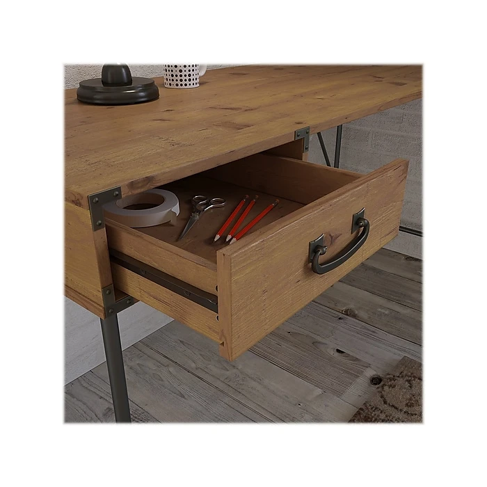 - Welded steel base gives the L-desk plenty of structural strength while adding to the reclaimed style