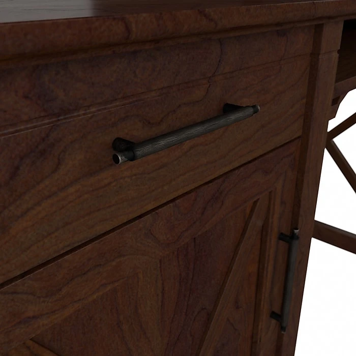 The Bush Furniture Key West 48″W small computer desk with hutch offers a compact workspace solution that brings casual style to your home office. Spread out with a computer, books, paperwork, and more on a durable desktop that supports up to 200 lbs. The work surface also has a built-in wire management grommet to keep cords and cables out of the way. A pullout shelf provides easy access to your keyboard or laptop, while a small box drawer organizes writing utensils, notepads, and other office supplies. Larger materials can be stashed inside the vertical storage cabinet to maintain a clutter-free work area. Take advantage of the hutch’s three open compartments to store books, or give your workspace a personal touch with pictures and decorations. This home office desk with storage has been tested to meet ANSI/SOHO standards for safety and performance and is backed by a 1-year warranty.