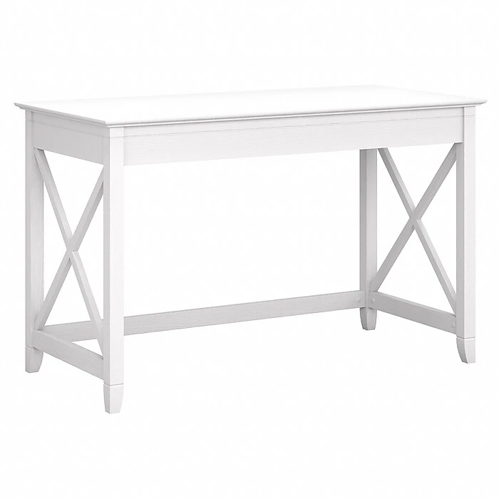 The Bush Furniture Key West 48″W writing desk features an easy-going style that makes it a perfect choice for your casual home office or living space. Take on your daily tasks from the comfort spacious personal work area, even in small office environments. The Bush Furniture Key West 48″W writing desk offers more than enough room to spread out with a laptop and paperwork as you surf the web, pay bills, or check the mail. Featuring side panels with unique X pattern accents, this office desk creates a relaxed and airy style supported by a sturdy and attractive post leg design. The durable work surface has a weight capacity of 200 lbs., so you can confidently keep books and other work materials close by. Measuring 30″H x 48″W x 24″D, the writing desk is perfect for use as a sofa table, console table, or personal work area and is finished on all sides to look great facing any direction. This small computer desk is tested to meet ANSI/SOHO quality standards for safety and performance and is backed by the Bush Furniture 1-year warranty.