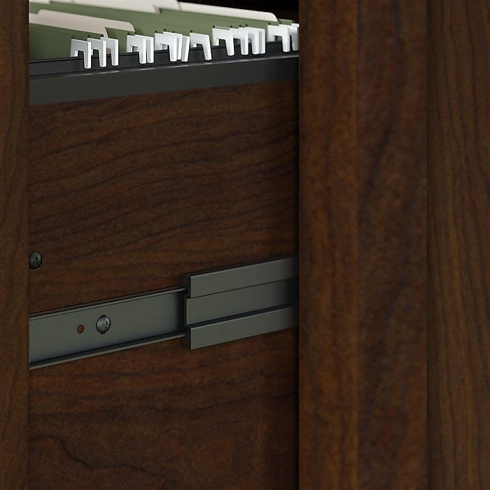 - Full extension ball bearing slides on Lateral File Cabinet drawers provide easy access to letter or legal size files