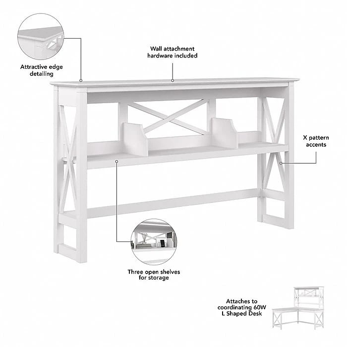 - Hutch adds an open shelf to organize work materials or brighten up the room with pictures and decorations