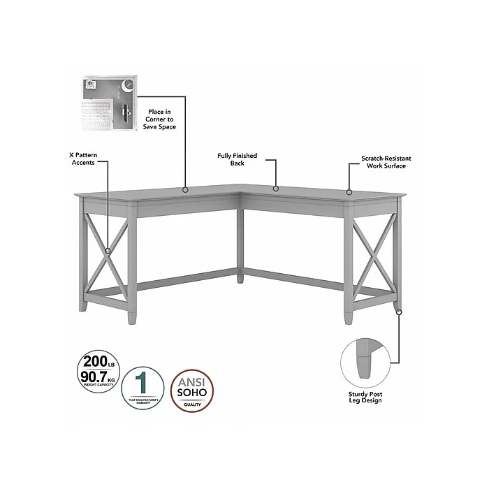 - Durable corner desk offers plenty of room to spread out with materials and supports up to 200 pounds