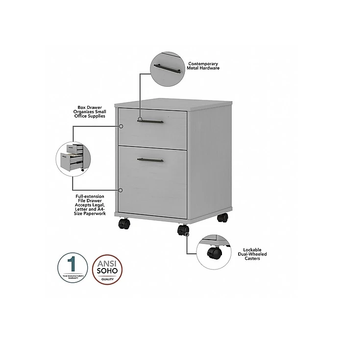 - File Cabinet can roll underneath the L Desk and features front-locking casters for secure placement