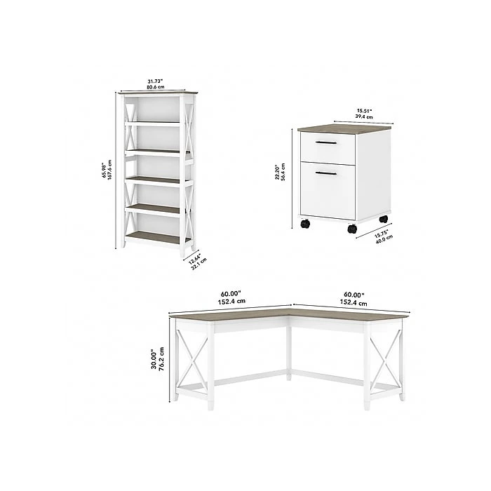| Included With Bundle | Bundle includes: 60W L Shaped Desk, 2 Drawer Mobile File Cabinet, Tall 5 Shelf Bookcase |