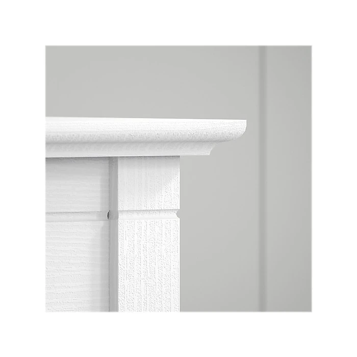 - Made of thermally fused laminate over composite wood and comes in a pure white oak finish