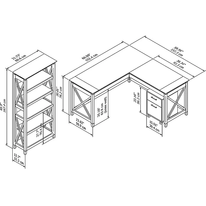 | Included With Bundle | Bundle includes: 60W L Shaped Desk, 2 Drawer Mobile File Cabinet, 5 Shelf Bookcase |