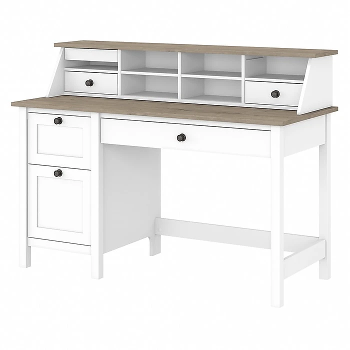 • Sleek and Functional Design: The Bush Furniture Mayfield 54″ Computer Desk combines a modern design with practical features. The Pure White/Shiplap Gray finish adds a touch of elegance to any room.