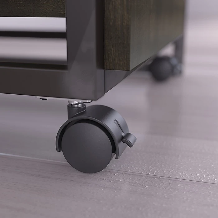 Unique reclaimed looks, industrial appeal and a sturdy space-saving design. The Bush Furniture Refinery 50W L Shaped Industrial Desk gives your home office, loft or creative space a weathered charm to match your rustic decor. The Industrial Steel frame and exposed bolts join a durable work surface finished in a distressed Rustic Gray to create an L Shaped Desk you’ll love to use and admire. Spread out with your laptop, projects or a good book and a cup of coffee with room to spare. Place the L Shaped Desk in a corner to conserve space or prominently display it in the center of a room. A perfect match for your Industrial Desk, the Mobile File Cabinet rolls anywhere or locks into place. A full-extension file drawer opens on smooth ball-bearing slides for easy access to the back. Display your rustic tastes with Refinery, backed by a 1 Year Warranty. Meets ANSI/SOHO furniture standards.