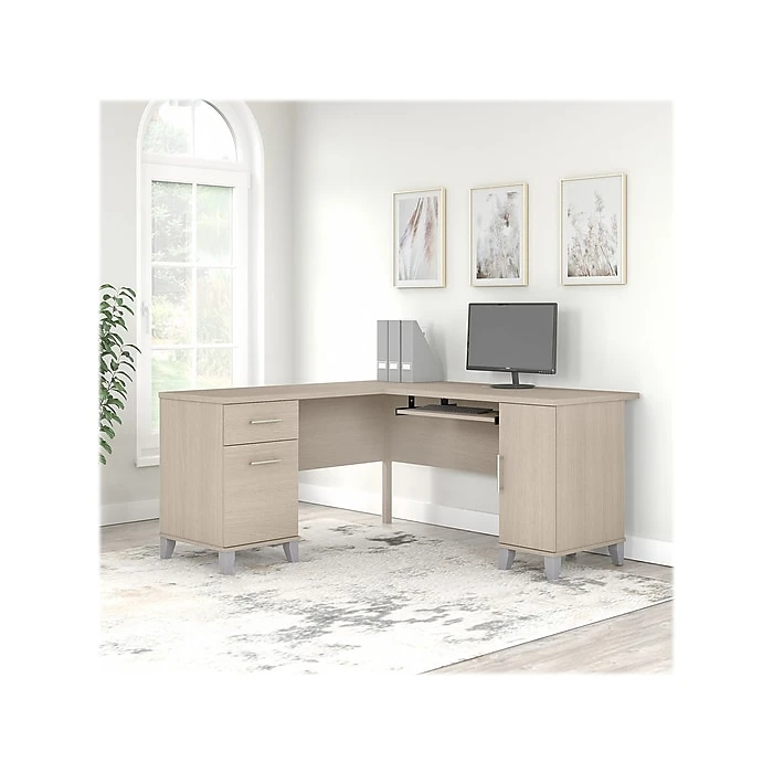 • Maximize your workspace with the Bush Furniture Somerset 60″ L-Shaped Desk. Designed for efficiency, this desk offers ample surface area and storage solutions.