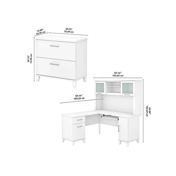 | Included With Bundle | Bundle includes: L-shaped desk with storage, desk hutch, and two-drawer lateral file cabinet |