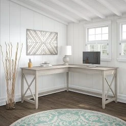 - Finished back allows the L-shaped desk to look great facing any direction in your home office or living room