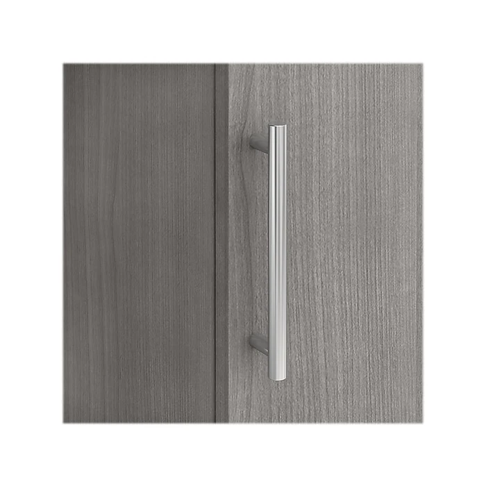 - Vertical storage cabinet contains one adjustable shelf for storing items of various sizes