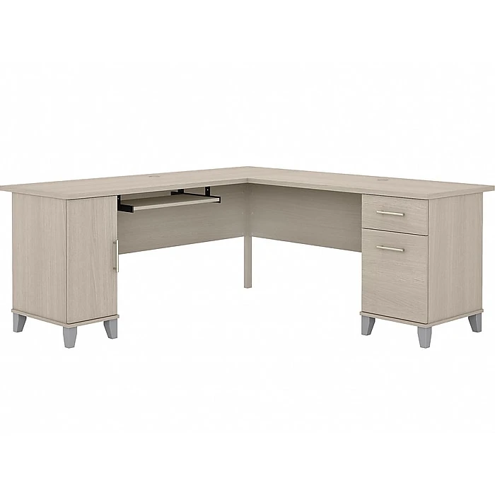 • The Bush Furniture Somerset L-Shaped Desk features a 72-inch design, perfect for maximizing corner spaces in your home or office.