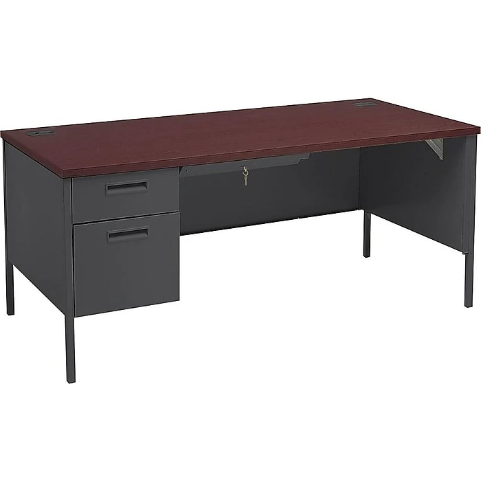 Spread out paperwork easily on this spacious left-pedestal desk. The box and center drawers provide plenty of space for holding staplers, scissors, and other office supplies, while the file drawer offers convenient storage for documents and folders. A double O-frame construction gives the pedestal enhanced durability and support, and the end panels have a double-walled design for increased protection from impact. This HON Metro Classic desk features a multi-ply laminate surface, so you can easily clean up spills, dirt, and other messes.