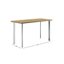 - Top is mahogany and made of laminate; base is charcoal and made of steel